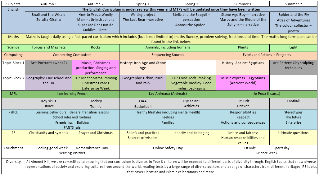 Year 3 Curriculum Plans