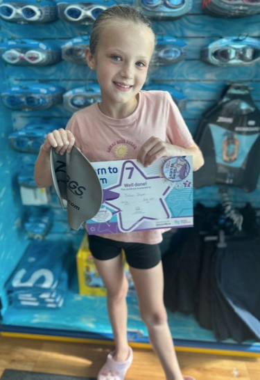 Congratulations to Aavya who moved to Stage 5 in her swimming lessons.