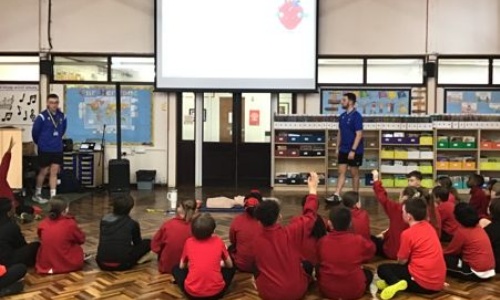 Year 5 were visited by Stevenage Sporting Futures on Wednesday for workshops educating them about how to help someone who may be in cardiac arrest. The children were talked through DR ABCD:   D-danger   R- response    A- airway   B-  breathing    C- CPR / circulation  D- defibrillator.     The children had a go at putting each other in the recovery position and then had a go at trying some CPR on some life-like dummies. There were lots of sore hands afterwards but what an amazing skill to learn. They then learnt about how defibrillators are used and how they can increase chances of survival from 10% to 70%!