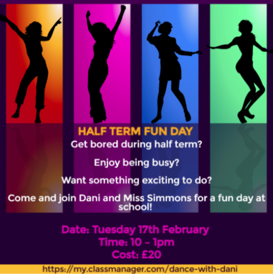 We’re delighted to invite students from all year groups to our Half Term Fun Day at school!  Join Dani and Miss Simmons for a morning packed full of energy, creativity, and fun.