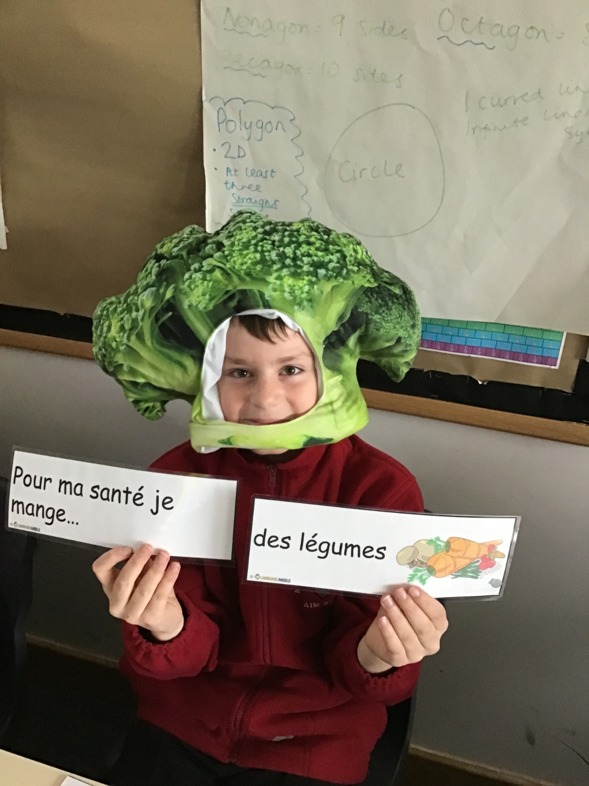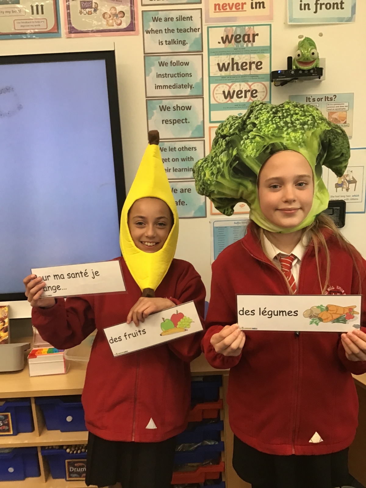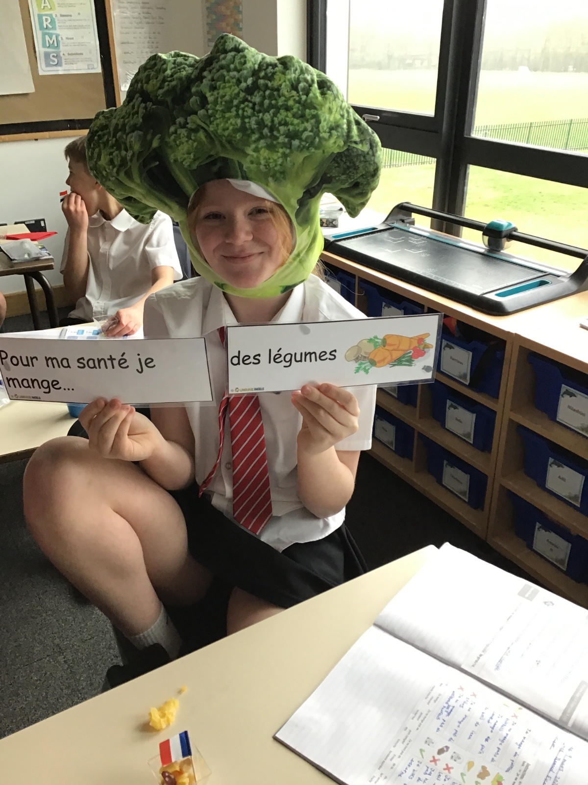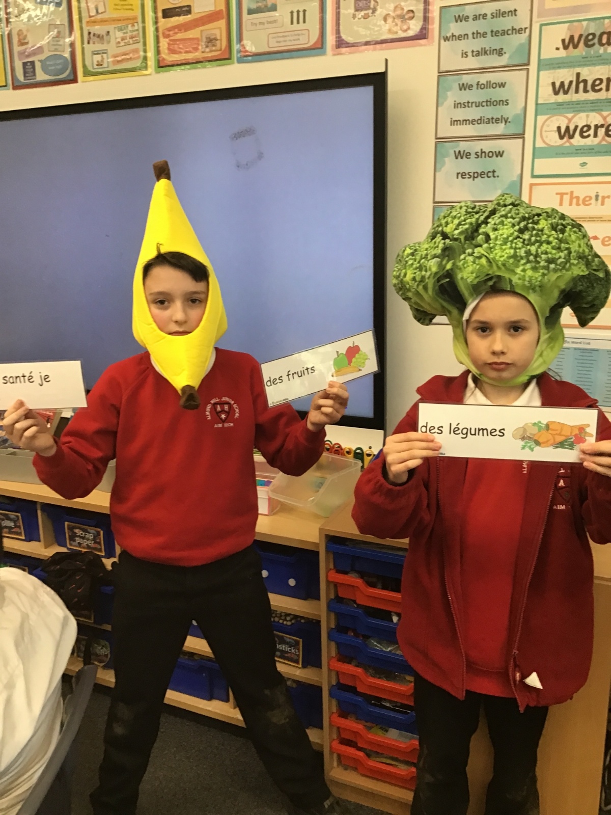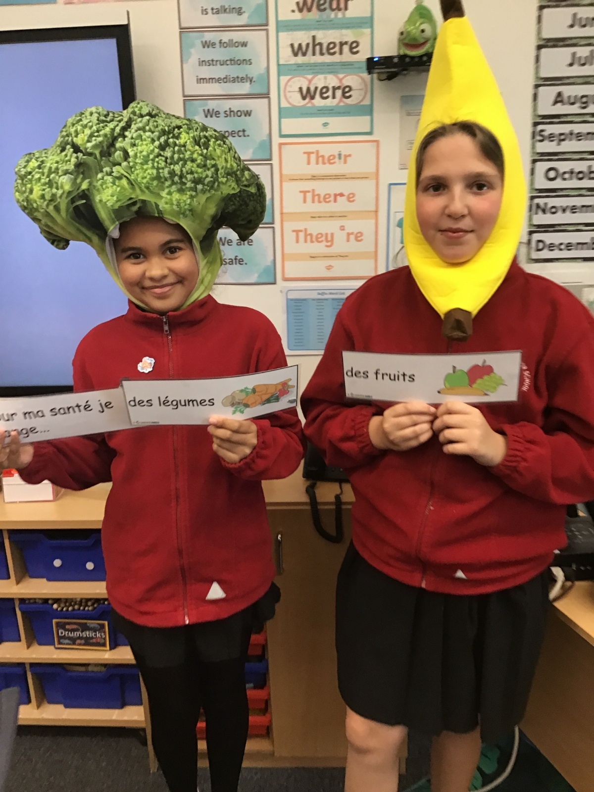 Year 4 - Vegetables where the children learnt the name of 10 vegetables in French, played snap and dressed as a broccoli.
