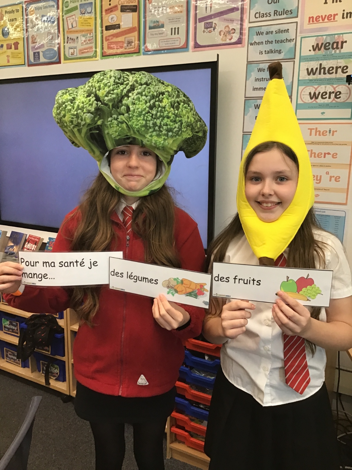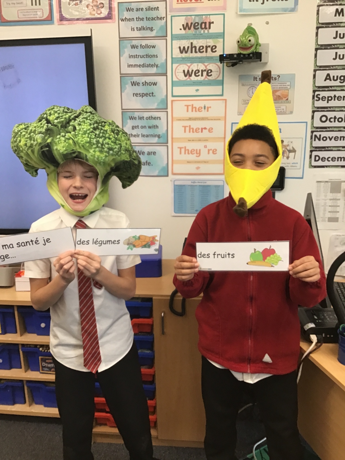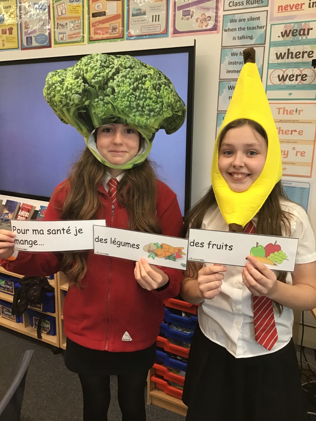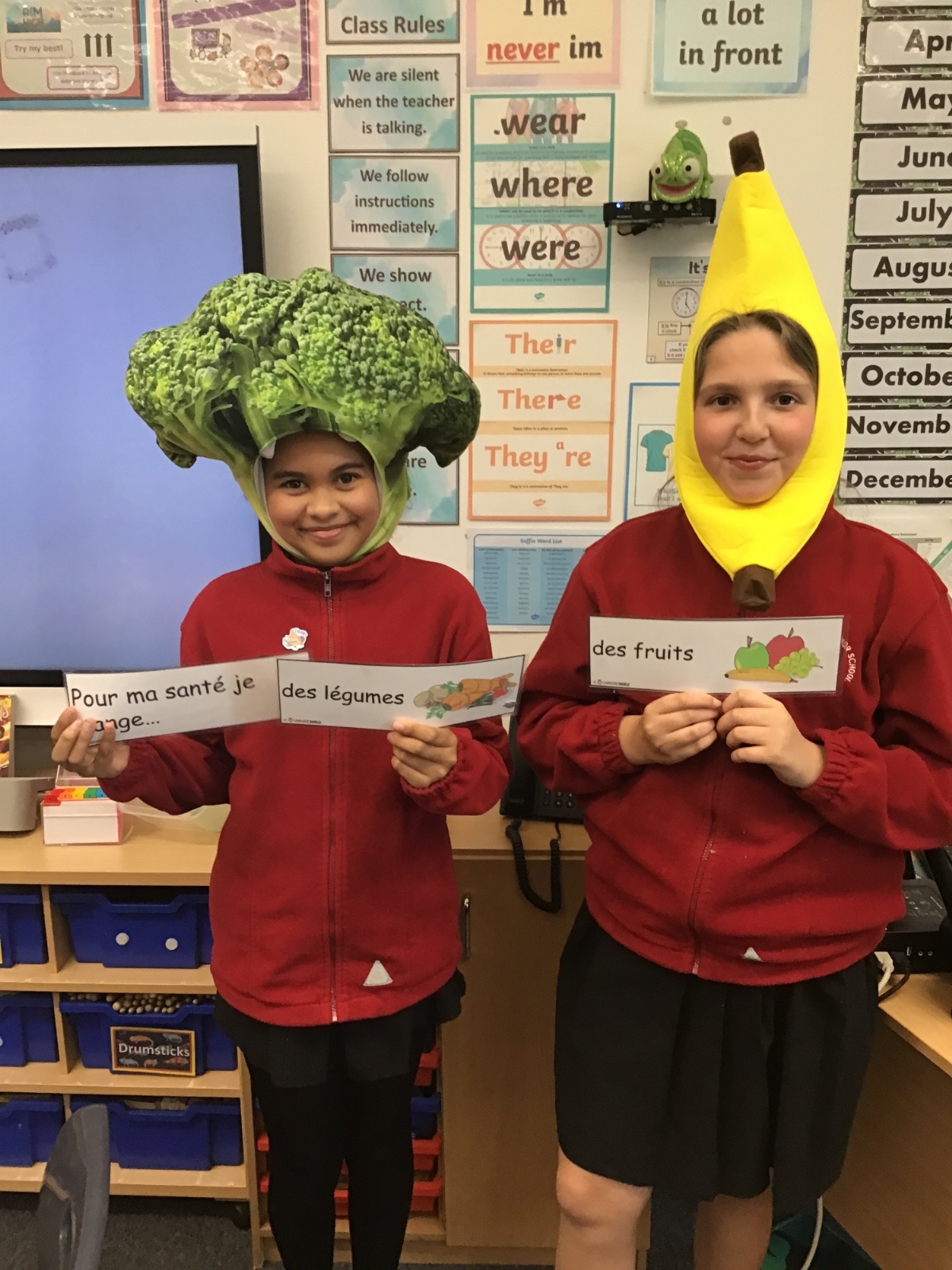 Year 4 - Vegetables where the children learnt the name of 10 vegetables in French, played snap and dressed as a broccoli.
