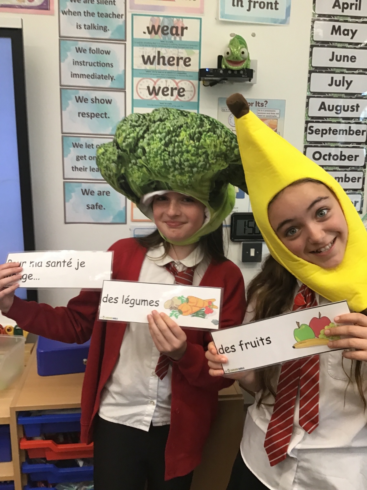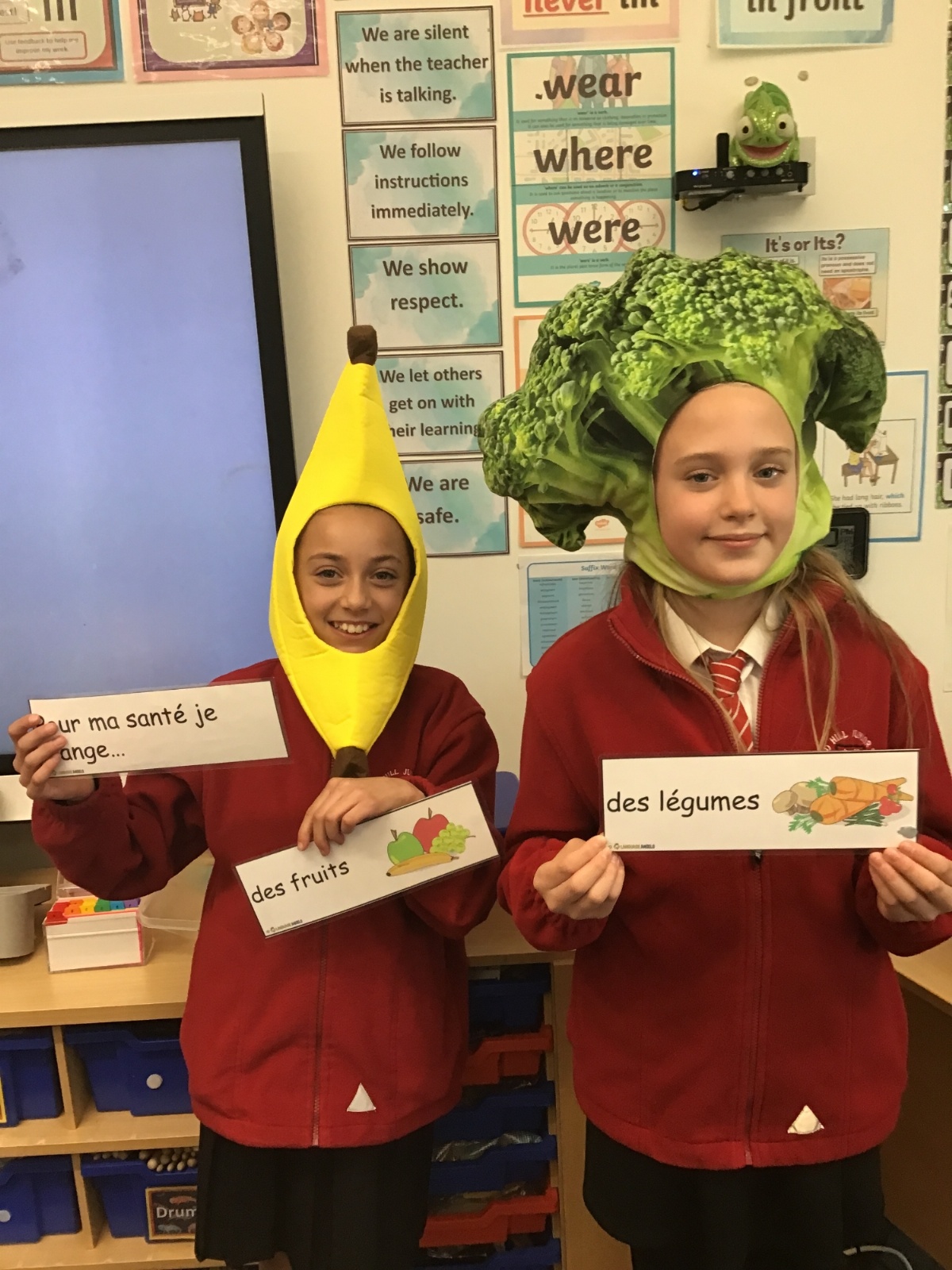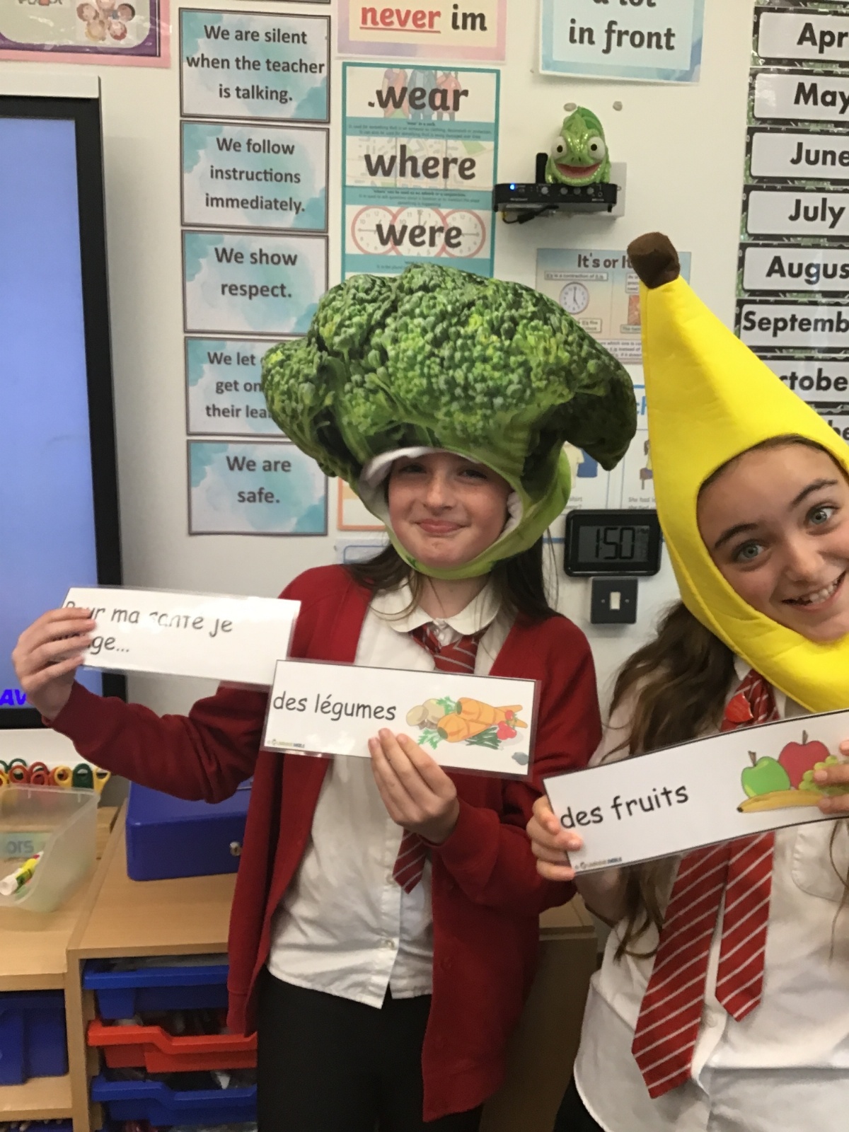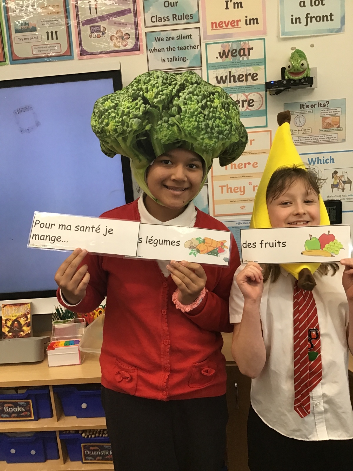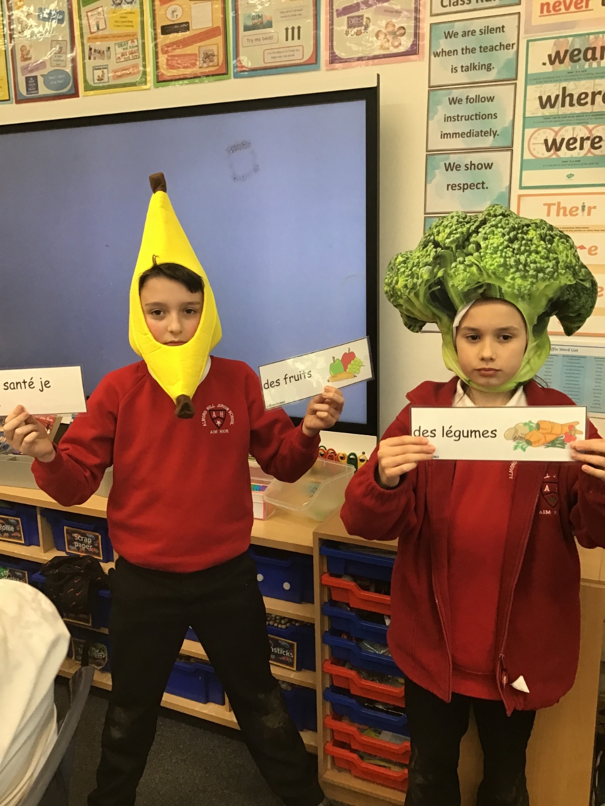 Year 4 - Vegetables where the children learnt the name of 10 vegetables in French, played snap and dressed as a broccoli.