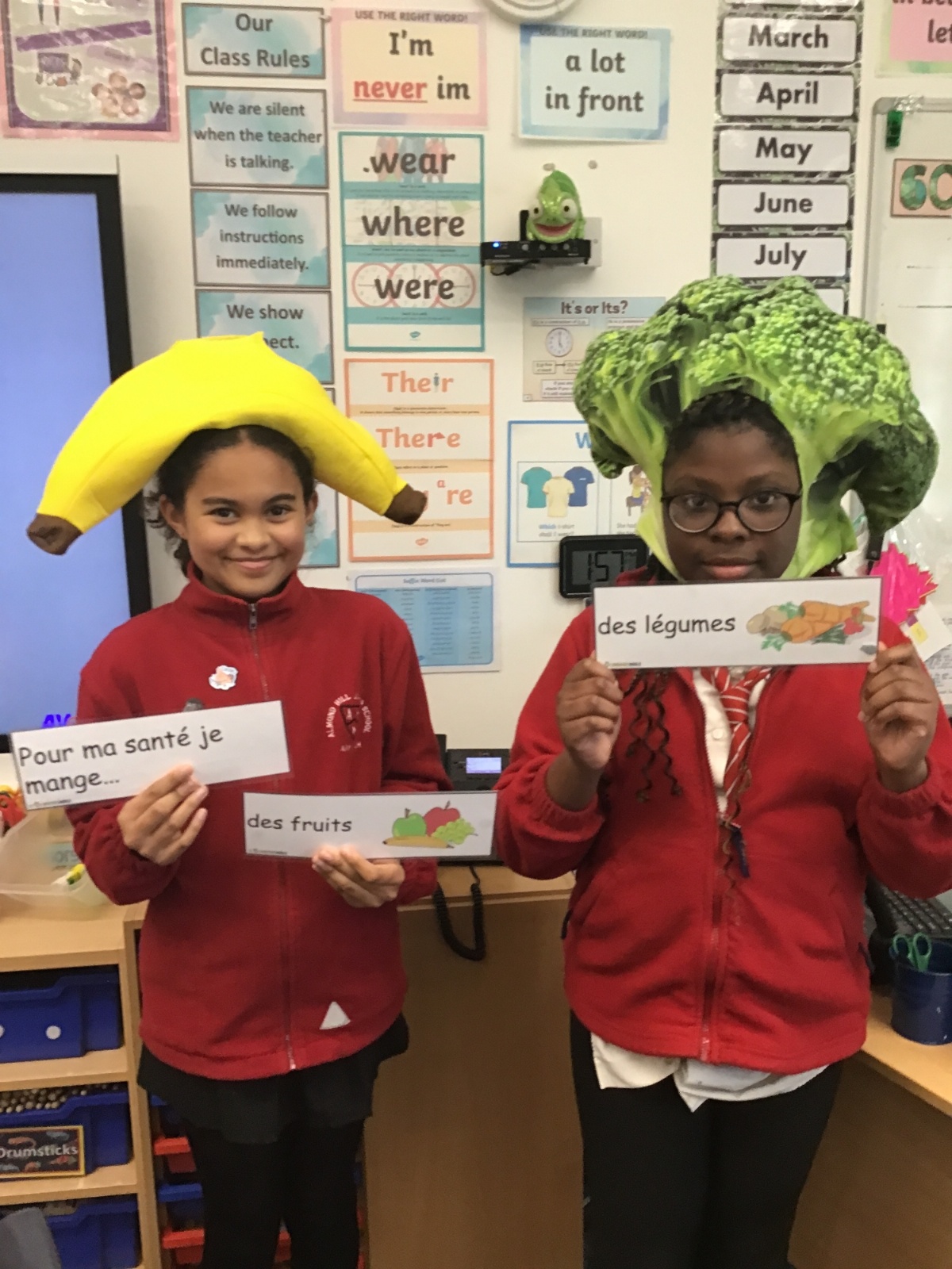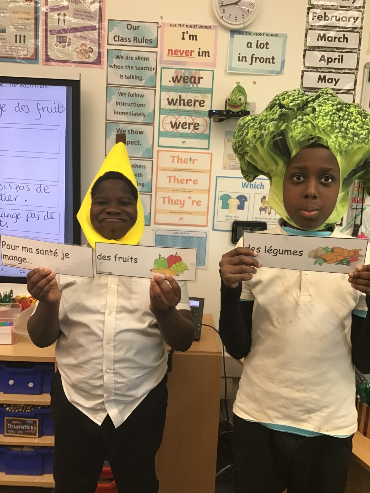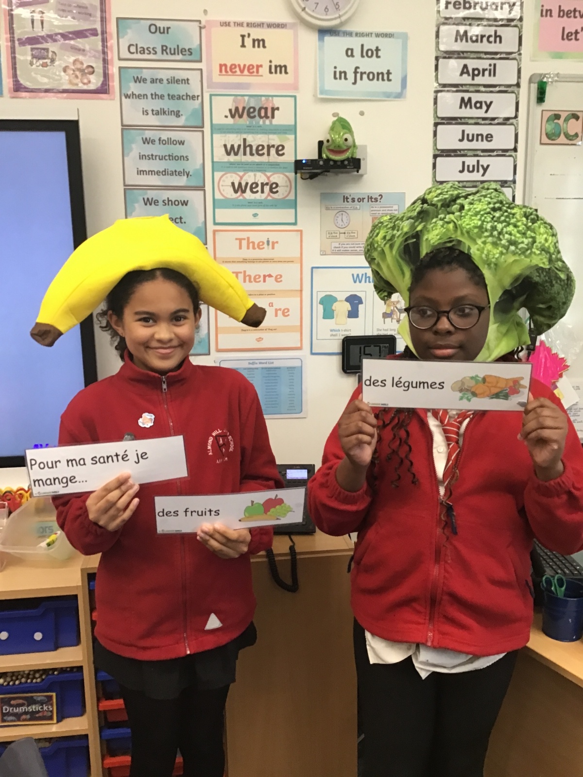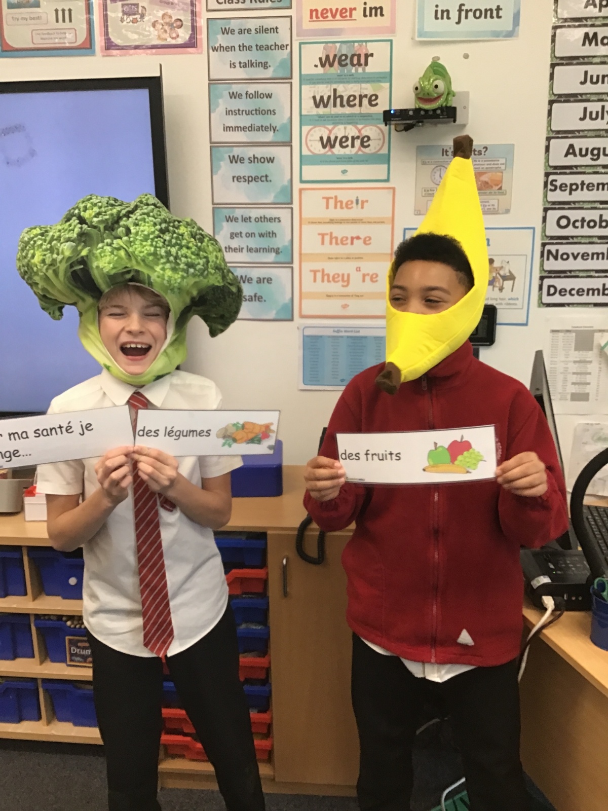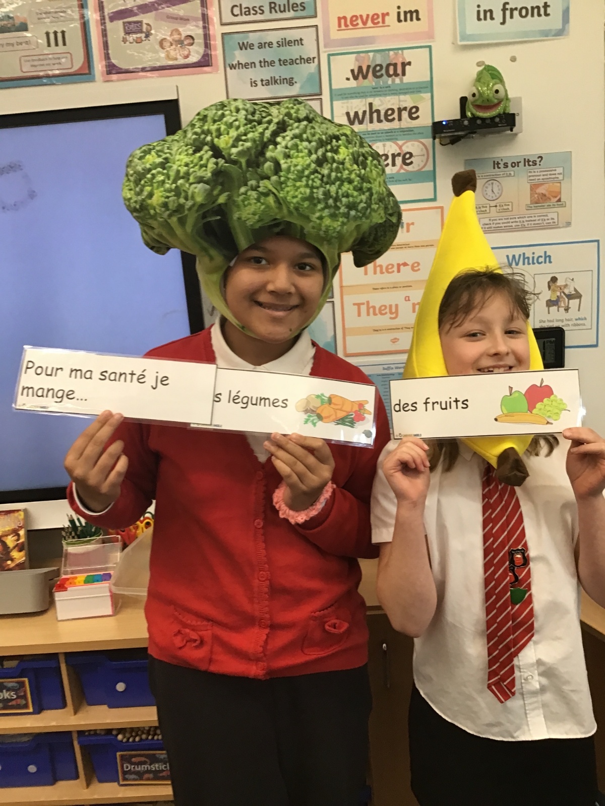 Year 4 - Vegetables where the children learnt the name of 10 vegetables in French, played snap and dressed as a broccoli.