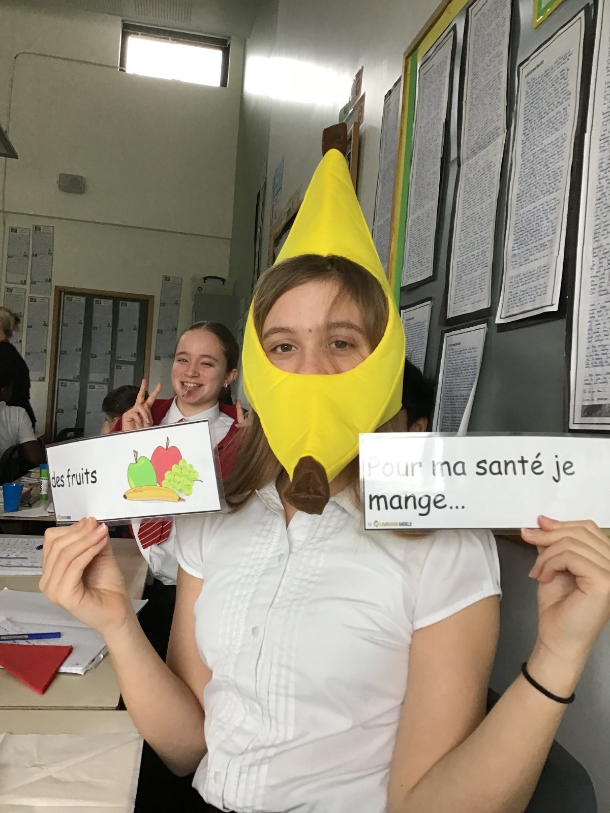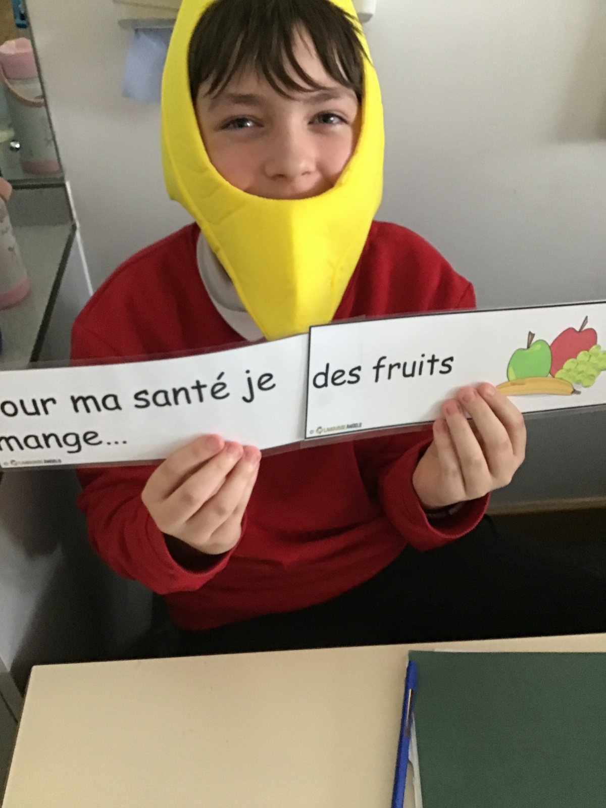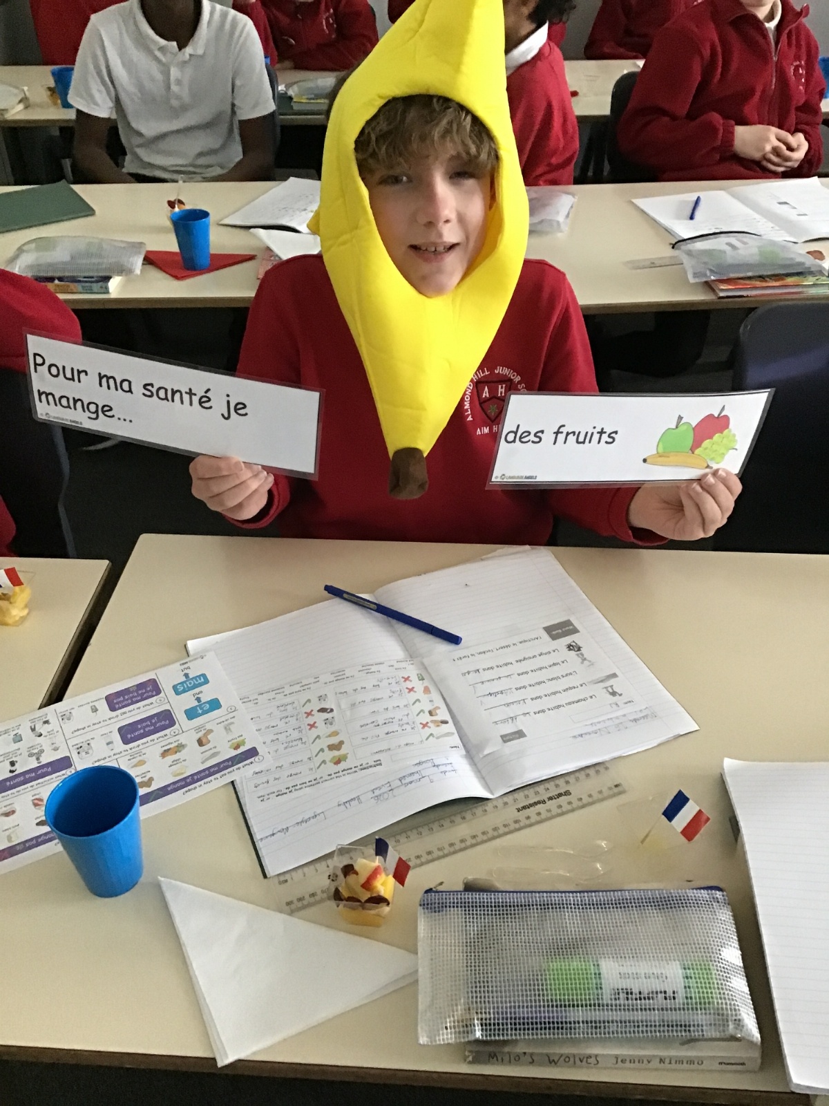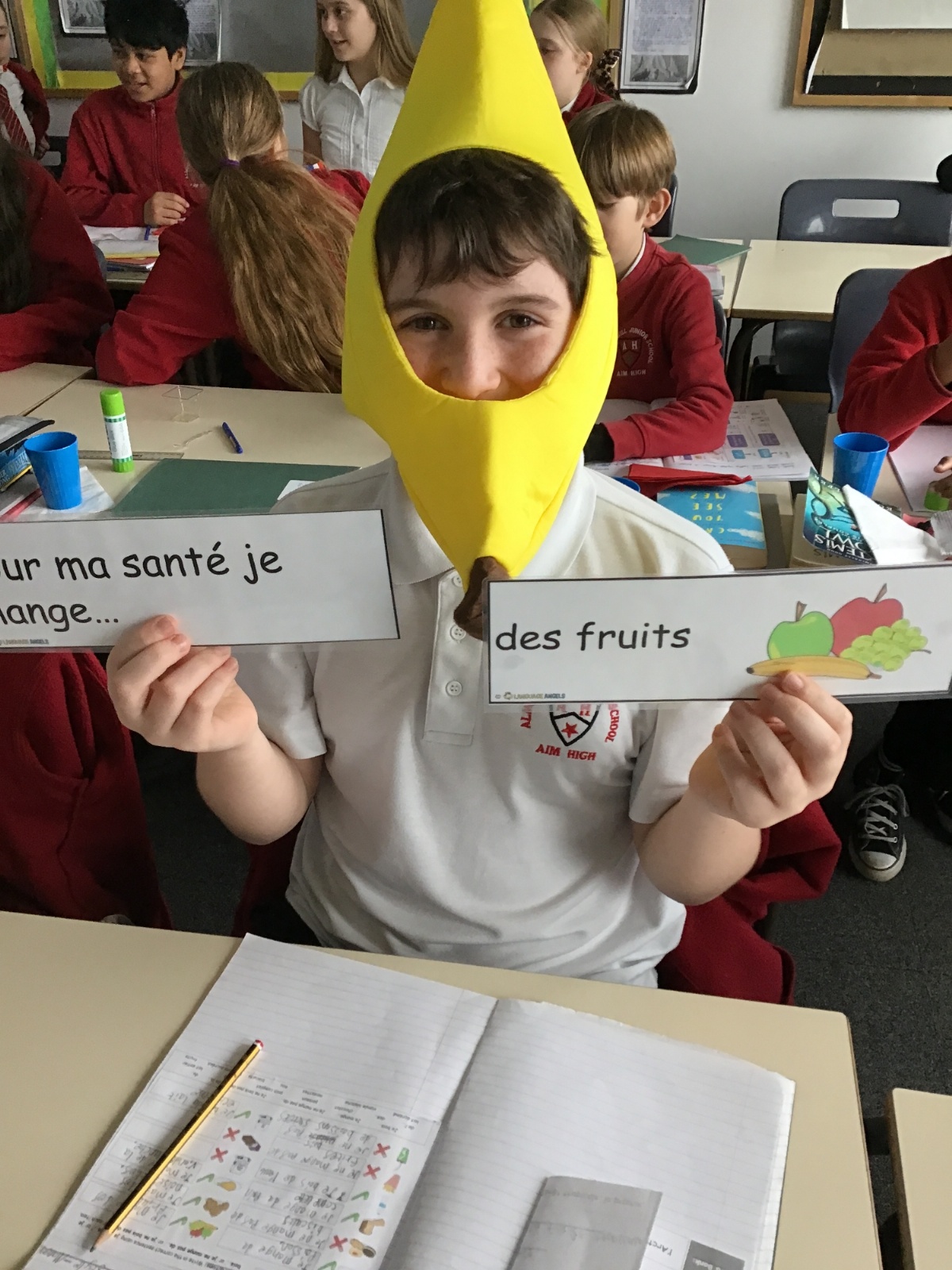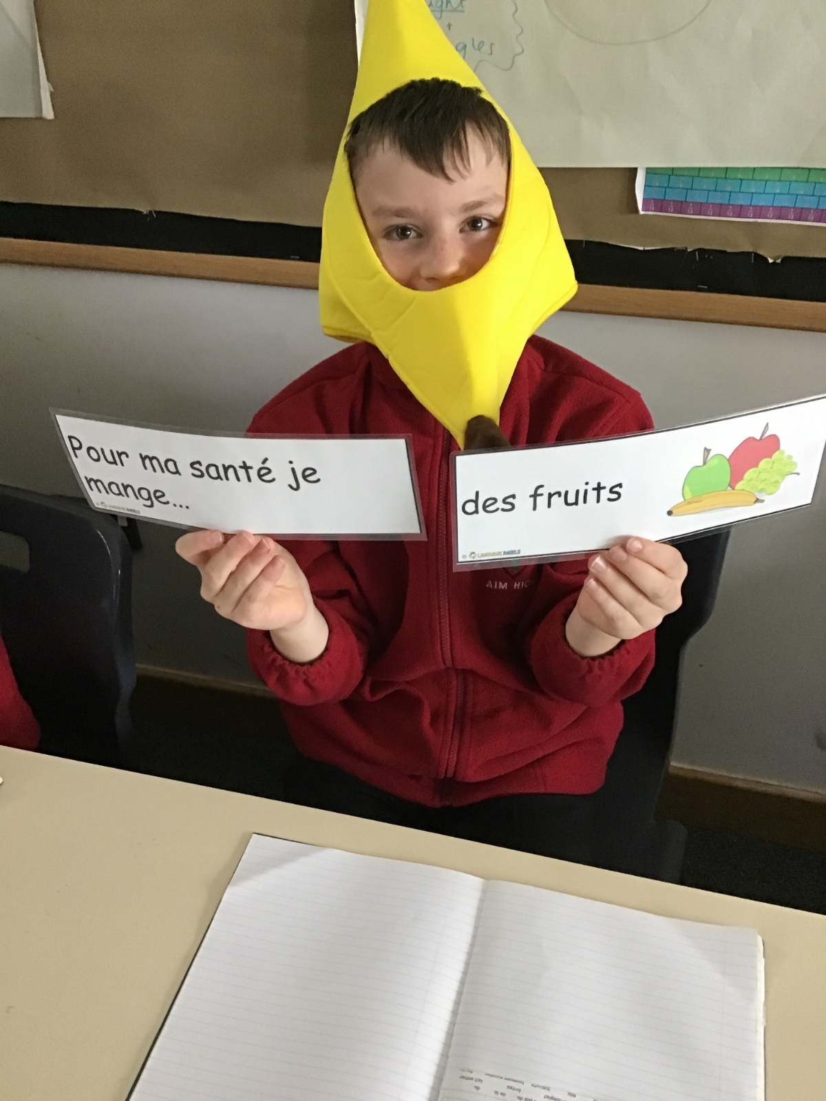 Year 3 - Fruits where the children learnt the name of 10 fruits in French, played snap and dressed as a banana.